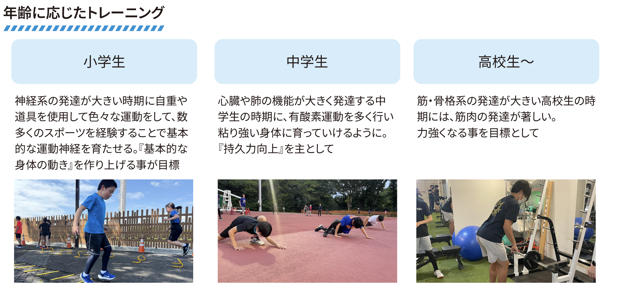 しっかりと目的をもって、年齢に応じたオフトレーニングです。