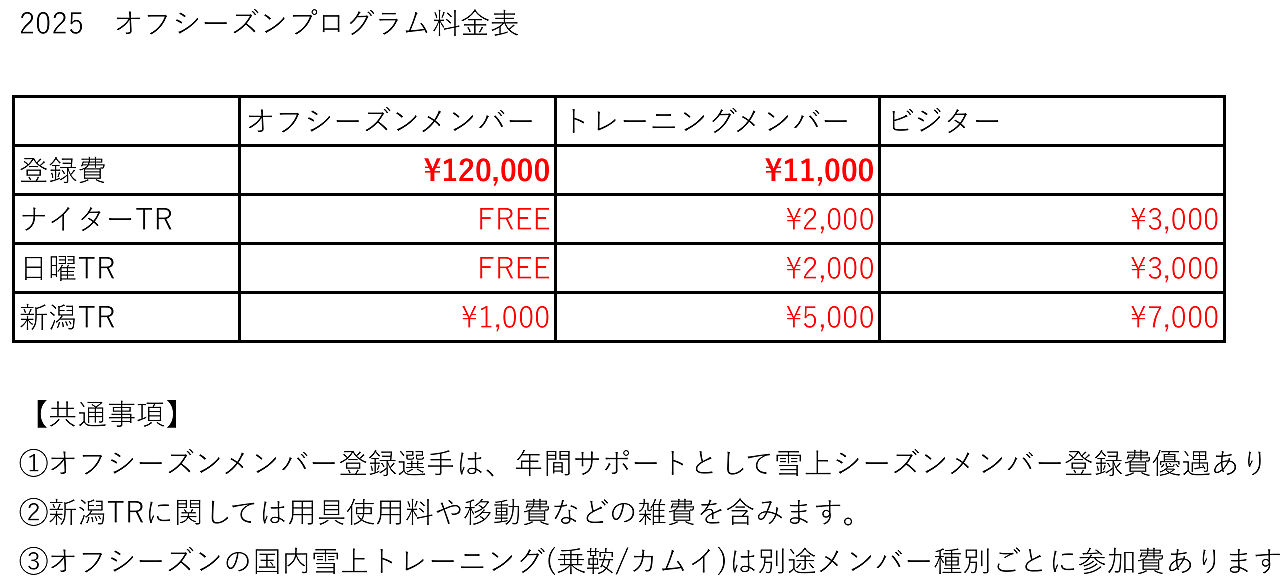 新潟地域でのオフトレーニング。