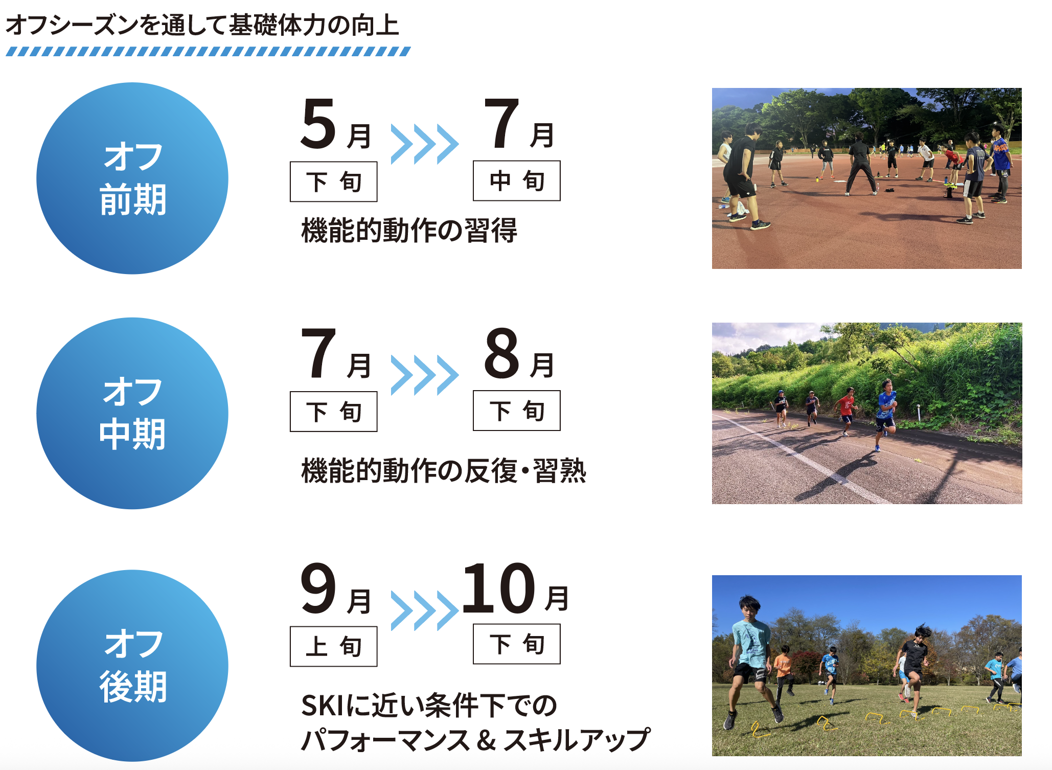 オフトレーニング中期である夏休みは集中した日程でトレーニングして、レベルアップを図ります。
